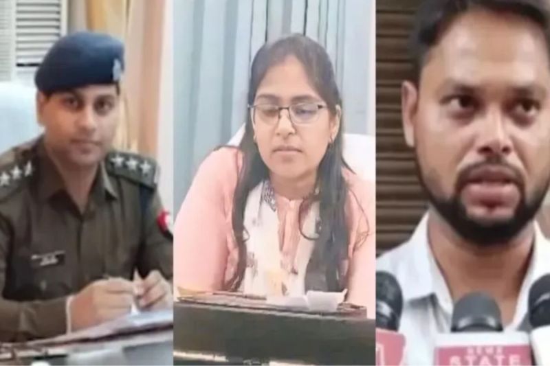 मनीष दुबे बाएं से, बीच में ज्योति मौर्य और दाएं से आलोक मौर्य।