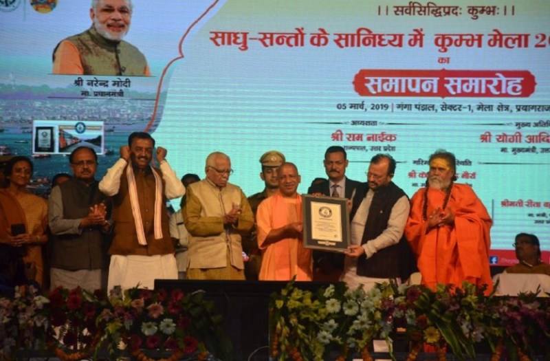 सीएम ने कहा कि अखाड़ा परिषद की मांग थी कुंभ की शुरुआत गंगा पूजा से होनी है और पीएम ने गंगा की पूजा से कुंभ मेले की शुरुआत की, जिसके बाद कुंभ में सफलता के नए कीर्तिमान बनाये। पहली बार कुंभ का सर्वसिद्धि प्रदः नाम का लोगो बना, 3 विश्व रिकॉर्ड बने, 6 हज़ार संस्थाएं जुड़ी, पहली बार अक्षयवट, सरस्वती कूप का दर्शन हुआ ।