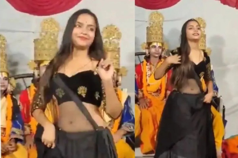 ताड़का वध के दृश्य के दौरान भोजपुरी के अश्लील गानों पर डांस