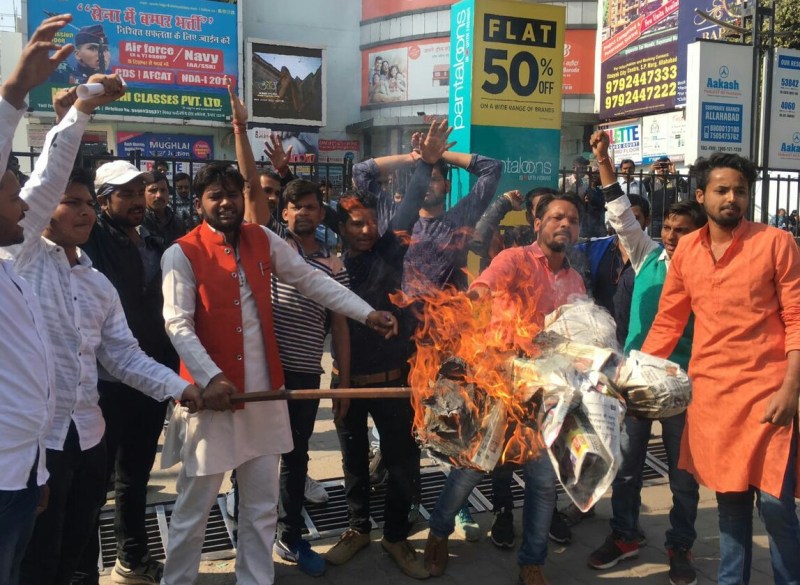 फिल्म रिलीज होने से पहले ही फिल्म का एक बार फिर विरोध शुरू हो गया है। आज इलाहाबाद में भी राजपूत उत्थान सभा की ओर से सिविल लाइंस में फिल्म पद्मावती का विरोध किया गया। इलाहाबाद विश्वविद्यालय छात्रनेता आदित्य सिंह के नेतृत्व मे पीवीआर सिनेमाघर के सामने संजय लीला भंसाली का पुतला दहन किया गया। साथ ही भंसाली के खिलाफ नारेबाजी की गई।