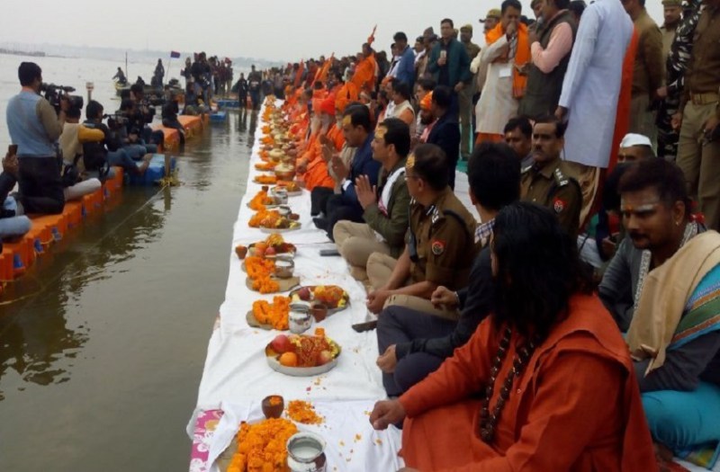 प्रयागराज. तीर्थराज प्रयाग की संगम की रेती पर दशकों से बंद पड़ी पंचकोसी पौराणिक परिक्रमा की परंपरा संगम तट से एक बार पुनः स्थापित हुई। तीर्थराज प्रयाग की धरती पर सदियों से विलुप्त हो चुकी पंचकोशी परिक्रमा के साथ भगवान शिव के द्वादश स्वरूप के दर्शन के लिए द्वादश माधव की परिक्रमा का शुभारंभ हो गया। त्रिवेणी के तट पर भगवती गंगा के सानिध्य में वैदिक मंत्रों के साथ पूजन, अर्चना और आरती के साथ मेला प्रशासन सहित संतों की टोली पंचकोसी परिक्रमा के लिए रवाना हुई । लंबे समय से पंचकोसी परिक्रमा को प्रारंभ करने की मांग चल रही थी । कुंभ की तैयारियों के दौरान संतों की मांग पर मेला प्रशासन ने पंचकोसी परिक्रमा के स्थानों को तय करके सुंदरीकरण का कार्य शुरू करवाया था। बता दें कि प्रयागराज के पूर्व दिशा में महर्षि दुर्वासा ऋषि का आश्रम तो पश्चिम में भारद्वाज ऋषि विराजमान है। उत्तर में पांडेश्वर महादेव स्थापित है और दक्षिण में पर्णास (पराशर) ऋषि का स्थान कहा जाता है। धार्मिक मान्यताओं के अनुसार माना जाता है कि इन चारों बिंदुओं पर अगर प्रयागराज पहुंचकर दर्शन कर लिया गया तो प्रयाग की परिक्रमा पूरी हो जाती है ।