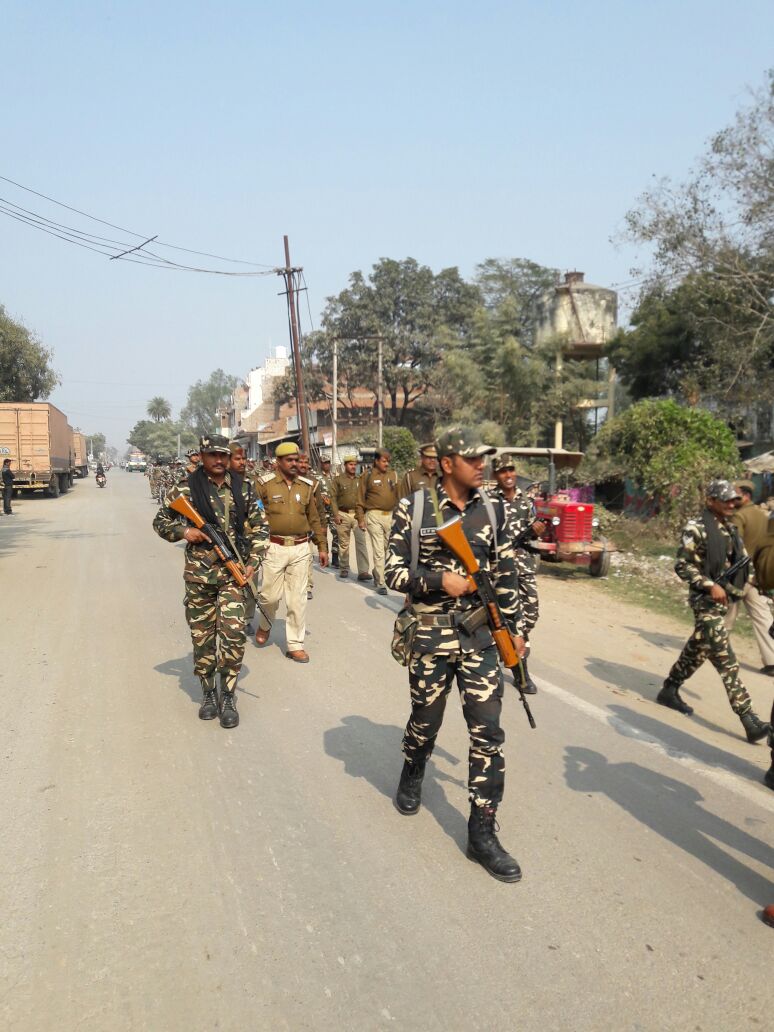 बतादें कि बारा क्षेत्र जारी बाजार , कौंधियारा बाजार , अकोढा बाजार जोगनइ ,राम का पूरा, सहित कई गावों मे क्षेत्राधिकारी बारा कृष्ण गोपाल सिंह, एसओ कौंधियारा ताहिर हुसैन, के साथ सुरक्षा बलों ने फ्लैग मार्च किया और लोगों को सुरक्षा का भरोसा दिलाया।