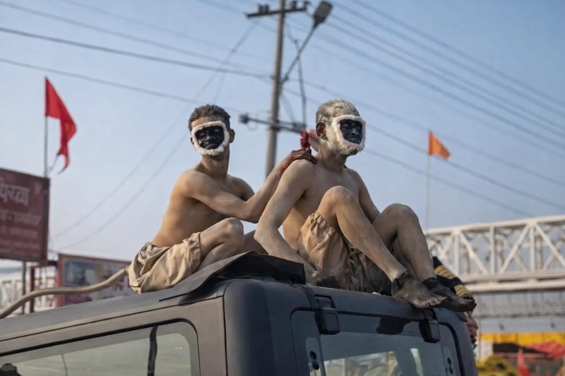 थार से प्रयागराज में पहुंचे मंकी मैन, PC- X