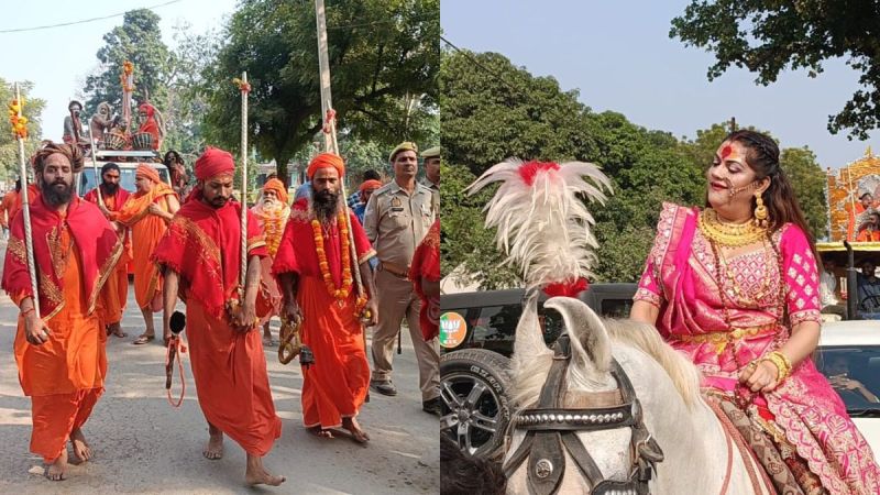Prayagraj Mahakumbh News Today: प्रयागराज में आयोजित होने जा रहे महाकुंभ के लिए अखाड़ों के साधू- संतों का आगमन शुरू हो गया है। औपचारिक तौर पर रविवार (3 नवंबर) को सबसे पहले सन्यासियों के सबसे बड़े अखाड़े श्री पंच दशनाम जूना और उससे संबद्ध किन्नर अखाड़े के संतों ने ढोल नगाड़ों और बैंड बाजों के बीच शाही अंदाज में नगर प्रवेश किया। साधू- संतों का शाही जुलूस करीब डेढ़ किलोमीटर लम्बा था, और इसमें रथों पर रखे चांदी के हौदों पर सवार महामंडलेश्वर और दूसरे संत आकर्षण का केंद्र बने रहे। जूना और किन्नर अखाड़े के संतो ने शाही अंदाज में जब घोड़ों और रथों पर सवार होकर शहर में प्रवेश किया तो बड़े ही उत्सुकता से फूलों की बारिश कर उनका स्वागत किया गया।