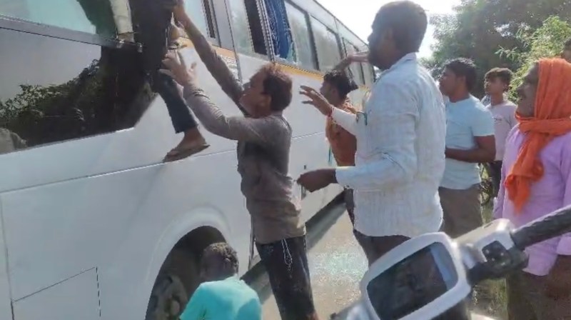Prayagraj accident: प्रयागराज के यमुनानगर इलाके में बुधवार की सुबह दर्दनाक हादसा हुआ। जिसमें मिर्जापुर की तरफ से प्रयागराज आ रही एक बस मांडा थाना क्षेत्र के आंधी गांव के समीप पहुंची तभी अनियंत्रित हो गई और सामने से आ रही एक बाइक को कुचलते हुए आगे निकल गई। घटना में बाइक सवार दो युवकों की मौके पर ही मौत हो गई। इसके बाद आसपास के सैकड़ो की भीड़ वहां इकट्ठा हुई और आक्रोशित लोगों ने बस को रोक कर उसमें तोड़फोड़ शुरू कर दी।