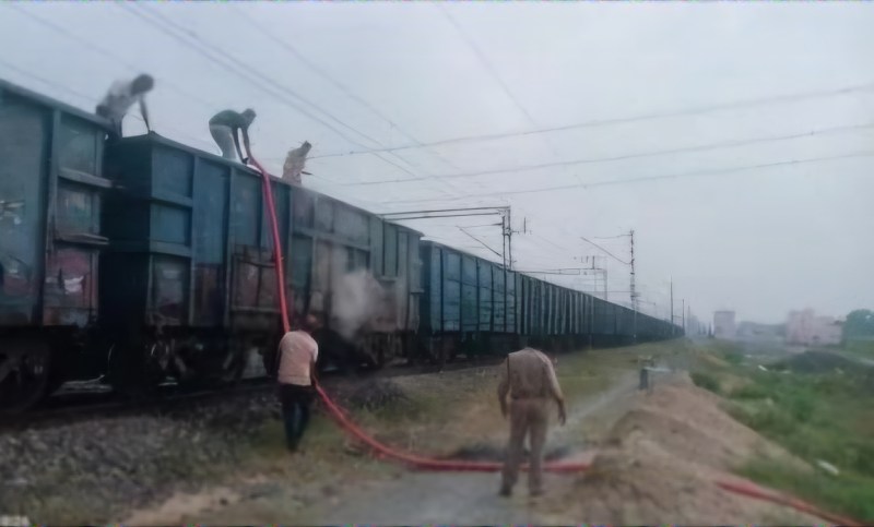Railway news: कोयला लेकर कानपुर जा रही मालगाड़ी में प्रयागराज के पास आग लग गई। जिससे रेलकर्मी हैरान हो गए। कर्मचारियों की सूचना पर पहुंचे फायर कर्मियों ने आग पर काबू पाया। आग बुझाने के बाद मालगाड़ी को गंतव्य के लिए रवाना कराया गया।