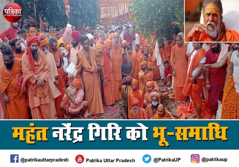 भू-समाधि की परम्परा में संतों ने नम आंखों से महन्त नरेंद्र गिरि को अंतिम विदाई दी गई। इस दौरान हर किसी ने 'ओम नमो नारायण' का जयकारा लगाकर उन्हें अंतिम श्रद्धांजलि दी। महन्त नरेंद्र गिरि अमर रहे का भी जयकारा श्रद्धालुओं ने भी लगाया।