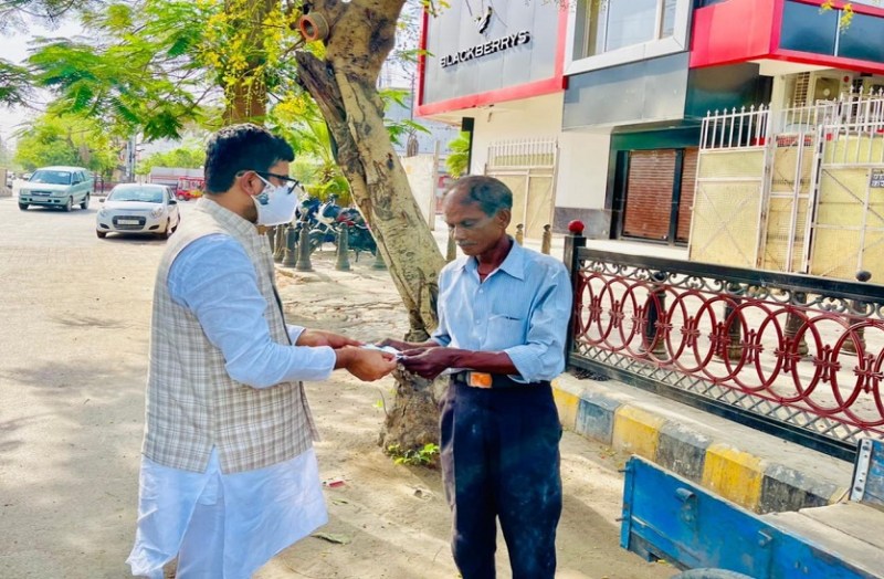 सिविल लाइंस में मास्क वितरित करते युवा चेतना के राष्ट्रीय संयोजक रोहित कुमार सिंह।