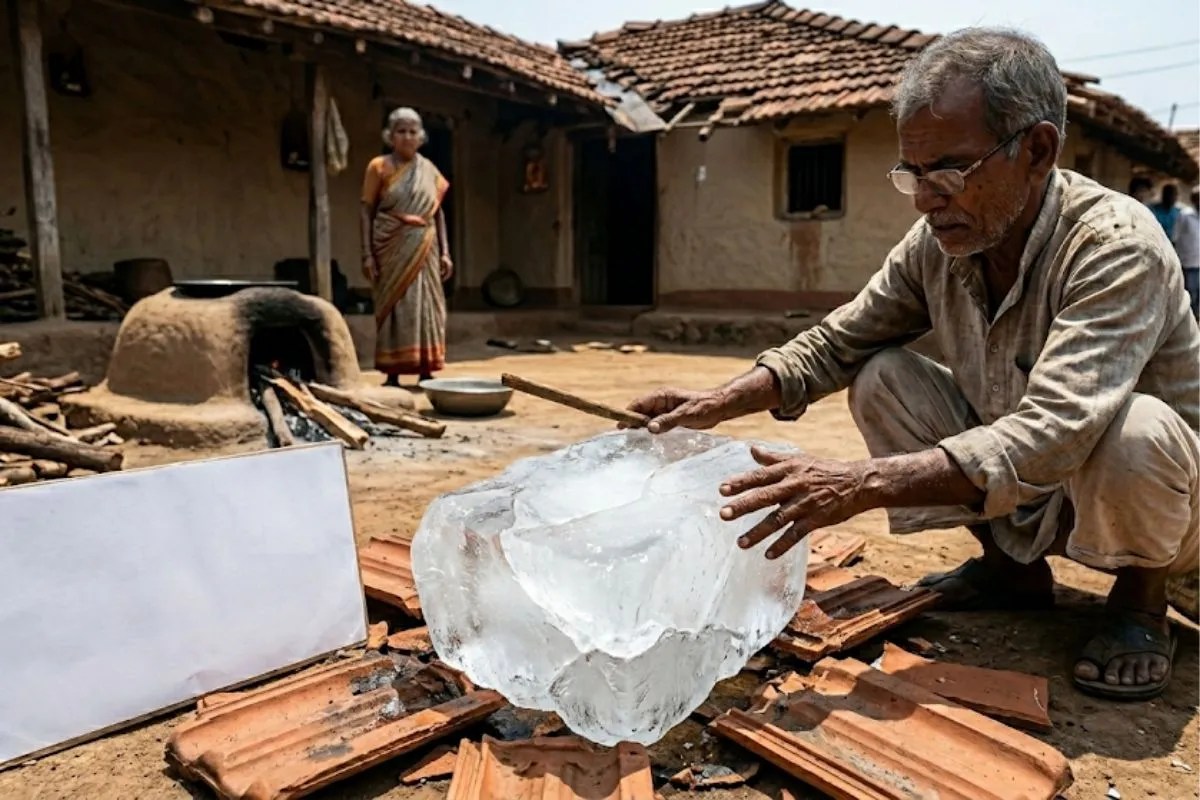 सिंधुदुर्ग (महाराष्ट्र):महाराष्ट्र के सिंधुदुर्ग जिले से एक बेहद चौंकाने वाली घटना सामने आई है। बताया जा रहा है कि मालवण तहसील के देवली गांव में चिलचिलाती धूप के बीच आसमान से अचानक बर्फ का एक विशाल टुकड़ा गिरा। करीब 5 किलो वजनी यह बर्फ का गोला 'खालची परबवाडी' निवासी विजय मधुकर देऊलकर के घर की छत फाड़कर सीधे रसोई में जा गिरा। इस रहस्यमयी घटना से पूरे इलाके में सनसनी फैल गई है।