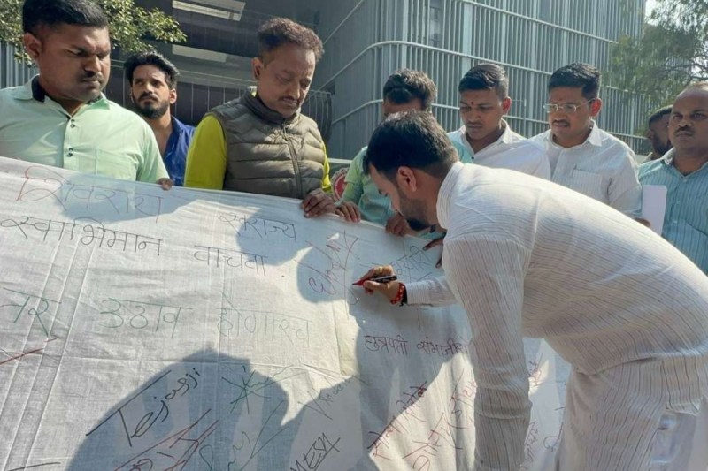 इसके साथ ही धोती पर सिग्नेचर कर अनोखे तरीके से विरोध प्रदर्शन किया गया। प्रदर्शनकारियों ने 'राज्यपाल को हटाओ, स्वाभिमान बचाओ', 'छत्रपति शिवाजी महाराज की जय' जैसे नारे भी लगाए। बता दें कि इससे पहले, महाराष्ट्र के पूर्व सीएम उद्धव ठाकरे ने महाराष्ट्र बंद की चेतावनी दी थी। उद्धव ठाकरे ने कहा था कि तमाम पार्टियों से अपील की है कि वे महाराष्ट्र बंद के लिए एक साथ आएं।