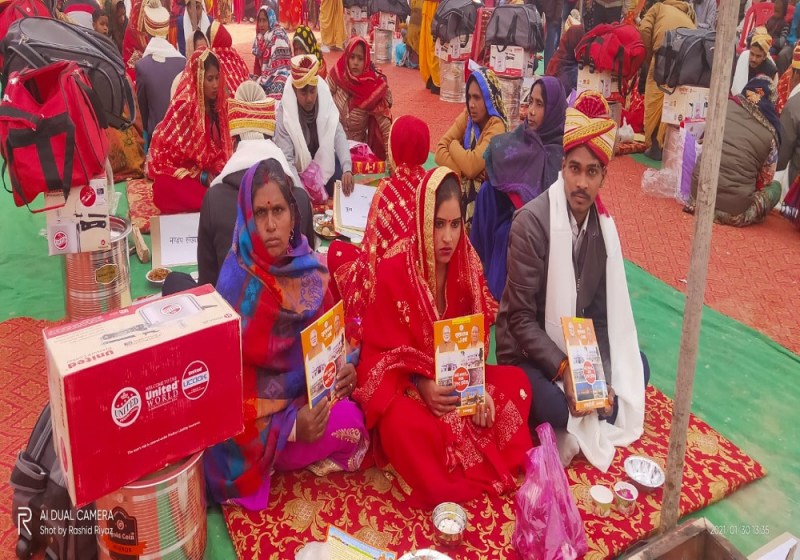 जिलाधिकारी वैभव श्रीवास्तव व मुख्य विकास अधिकारी अभिषेक गोयल द्वारा मुख्यमंत्री सामूहिक विवाह योजनान्तर्गत विवाह बधन में बंधे सभी जोड़ों व उनके परिजनों को हार्दिक बधाई देते हुए मंगलमय भविष्य की कामना की है। उन्होंने कहा कि पूरे प्रदेश में सामूहिक विवाह योजना में प्रारम्भ से अबतक लाखों से अधिक जोड़ो का विवाह सम्पन्न कराया जा चुका है। विवाह के तहत दहेज की कुप्रथा से मुक्ति, विवाह उत्सव में अनावश्यक अपव्यय एवं प्रदर्शन से मुक्ति, सर्वधर्म समभाव तथा सामाजिक समरसता को बढ़ावा देना भी है। जनपद में वित्तीय वर्ष 2017-18 में 249, वर्ष 2018.19 में 399, वर्ष 2019-20 में 664 एवं वर्ष 2020-21 में 64 कुल अबतक 1376 जोड़ो का सामूहिक विवाह सम्पन्न कराया जा चुका है। प्रदेश सरकार द्वारा इस प्रकार के आयोजन को प्रत्येक जनपद में कराकर जहां गरीबों परिवारों के विवाह सम्पन्न कराकर समाजिक दायित्वों का निर्वहन कर रही है वहीं इस प्रकार के आयोजन समाज में आपसी भाईचारा और सौहार्द बढ़ता है। प्रदेश के मुख्यमंत्री योगी आदित्यनाथ के निर्देशन में मुख्यमंत्री सामूहिक विवाह का आयोजन से जहां एक साथ सैकड़ों शादियां एक ही मण्डप व एक ही स्थान पर हो रही है इससे फिजूल खर्चे पर भी रोक लगने के साथ ही सामाजिक बुराईयां भी दूर हो रही है।