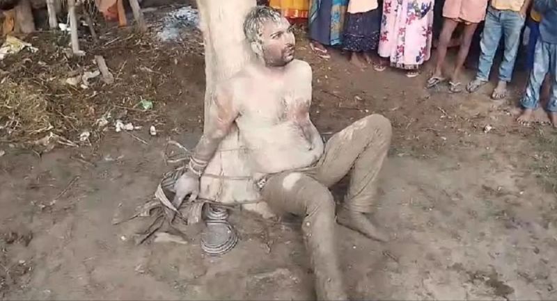 युवक को पेड़ से बांधकर बुरी तरह से पीटा।