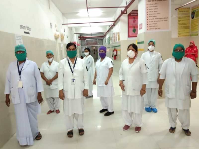 राज्य कर्मचारी संयुक्त परिषद के लोंगो ने काला फीता बांधकर किया काम