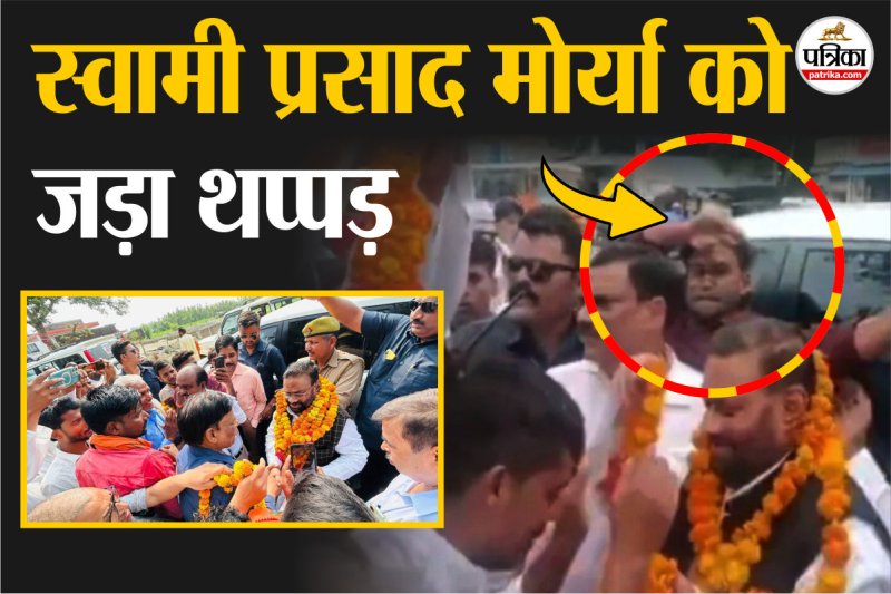 स्वामी प्रसाद मौर्य को जड़ा थप्पड़। फोटो सोर्स- पत्रिका न्यूज