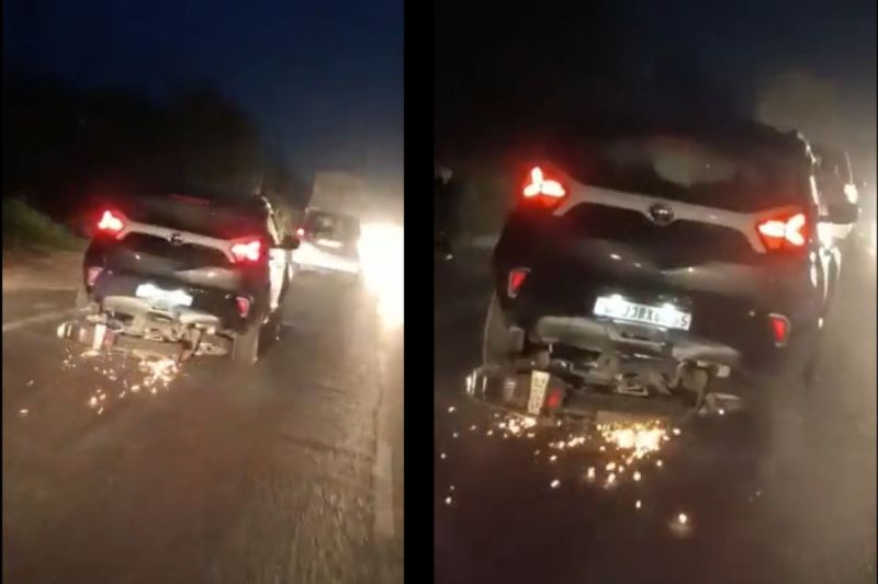 कार बाइक को घसीटते हुए लगभग 10 किलोमीटर तक ले गई