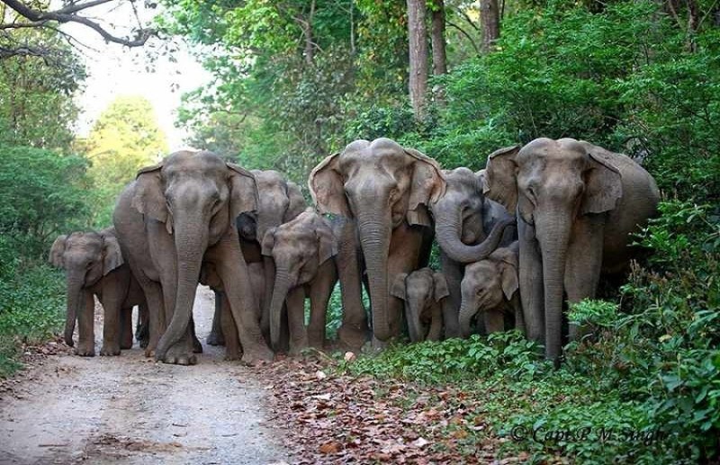 बाकारूमा में विचरण कर रहा 9 हाथियों का दल