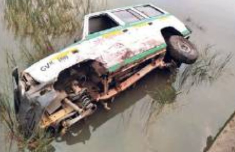 गर्भवती महिला को लेकर जा रहे चालक को आ गया चक्कर, डिवाइडर से टकराकर तालाब में गिरा एम्बुलेंस