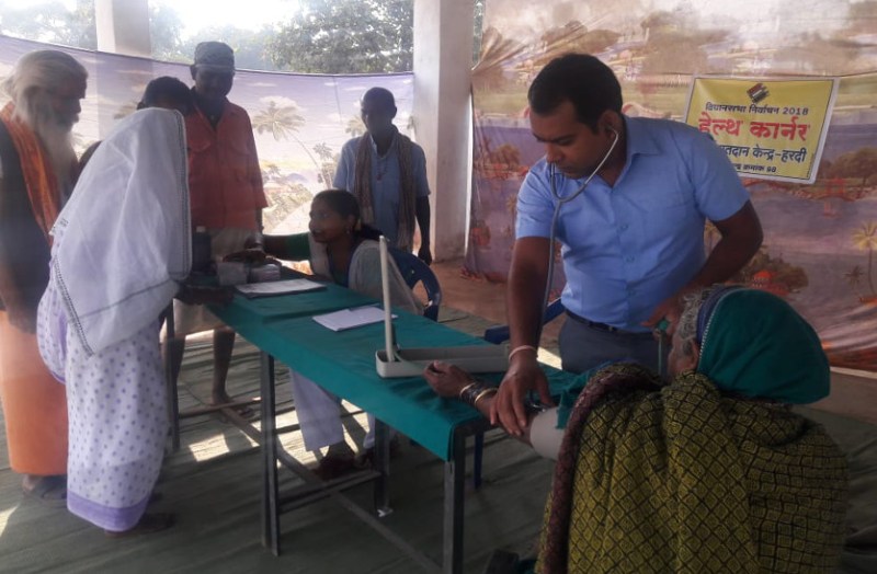 रायगढ़. सारंगढ़ के सभी आदर्श मतदान केंद्रों में हेल्थ कार्नर बनाए गए हैं। मतदान के दौरान इसका लाभ बहुत सारे वृद्धजनों व अन्य ने लिया। सारंगढ़ विधानसभा क्षेत्र में जिला निर्वाचन आयोग द्वारा वहां बने आदर्श मतदान केंद्रों में हेल्थ कॉर्नर की व्यवस्था की गई है। इस व्यवस्था के तहत बूथ में ही एक किनारे एक छोटा सा हेल्थ कैंप लगाया गया है, जिसमें डॉक्टर व अन्य सहायक मतदान स्थल पर पहुंच रहे बुजुर्गों व अन्य लोगों का स्वास्थ्य जांच कर रहे हैं।