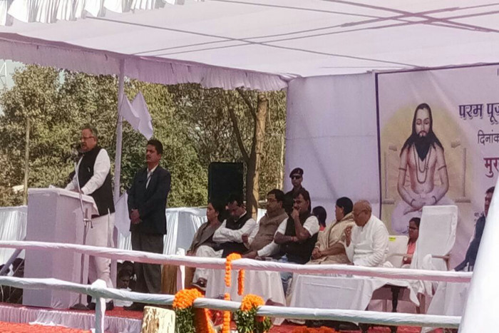 रायगढ़. 18 दिसंबर कई मामलों में खास है। इस दिन गुरु घासीदास की जयंती है, वहीं विधानसभा चुनाव के परिणाम में गुजरात और हिमाचल में भाजपा ने अपना झंडा लहराया है। ऐसे में सारंगढ़ पहुंचे सीएम रमन सिंह ने अपने भाषण के दौरान गुजरात और हिमाचल चुनाव की जीत पर खुशी जताते हुए कहा कि ये गुरु घासीदास बाबा का आशीर्वाद है क्येांकि इनके ही आशीर्वाद से मैंने छत्तीसगढ़ में सरकार बनाई थी, वहीं इनके ही आशीर्वाद से गुजरात और हिमाचल में भी भाजपा ने सरकार बनाई है।