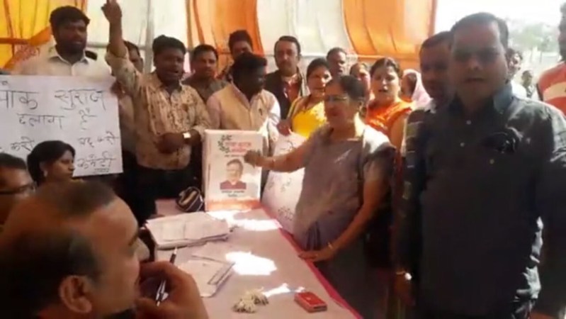 सुराज शिविर में पहुंचे लोगों ने पिछली बार के पेंडिंग आवेदनों के निराकरण नहीं होने की बात पर जमकर नारेबाजी भी की, ऐसे में जो सरकार निकम्मी है वो सरकार बदलनी है के नारे भी जमकर गूंजे।
