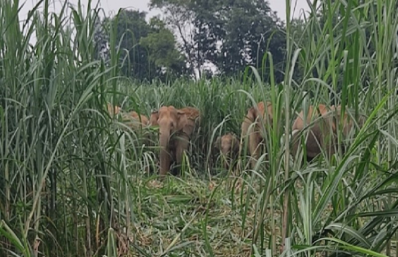 हाथियों के झुंड ने गन्ने के खेत में मचाया आतंक, करदी सारी फसल तहस-नहस