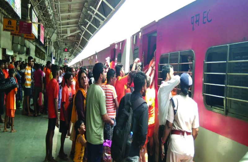 कांवडिय़ों की ऐसी उमड़ी भीड़ की रेलवे स्टेशन हुआ पैक