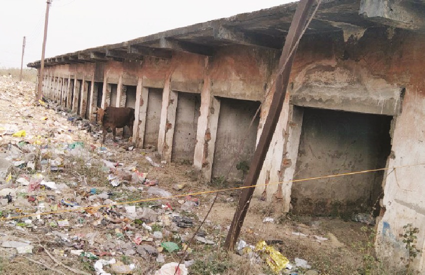 आबंटन के अभाव में खंडहर हो गई दुकानें, शटर हो गए गायब और दीवार धंसी