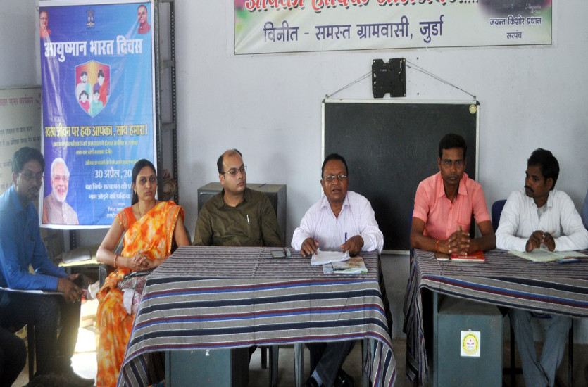 आयुष्मान भारत दिवस के अवसर पर रायगढ़ विकासखण्ड के ग्राम जुर्डा के पंचायत भवन में बड़ी संख्या में ग्रामवासी उपस्थित थे। इस मौके पर बीएमओ यानि ब्लाक मेडिकल ऑफिसर डॉ.जीएस पैकरा ने ग्रामवासियों को संबोधित करते हुए कहा कि प्रधानमंत्री नरेन्द्र मोदी ने लोगों के स्वास्थ्य की चिंता करते हुए राष्ट्रीय स्वास्थ्य सुरक्षा मिशन योजना की शुरुआत की। अब कोई भी बीपीएल परिवार के पात्र व्यक्ति जो पैसों की कमी के कारण अपना इलाज नहीं करा पाते थे। अब वे पूरे देश में संचालित अधिकृत निजी और शासकीय अस्पतालों में अपना इलाज करा सकते है। इस योजना के तहत 2011 के सर्वे सूची में शामिल पात्र परिवारों को 5 लाख रुपए तक चिकित्सा सुविधा का लाभ मिलेगा। इसमें परिवार के आकार, आयु का कोई प्रतिबंध नहीं है।