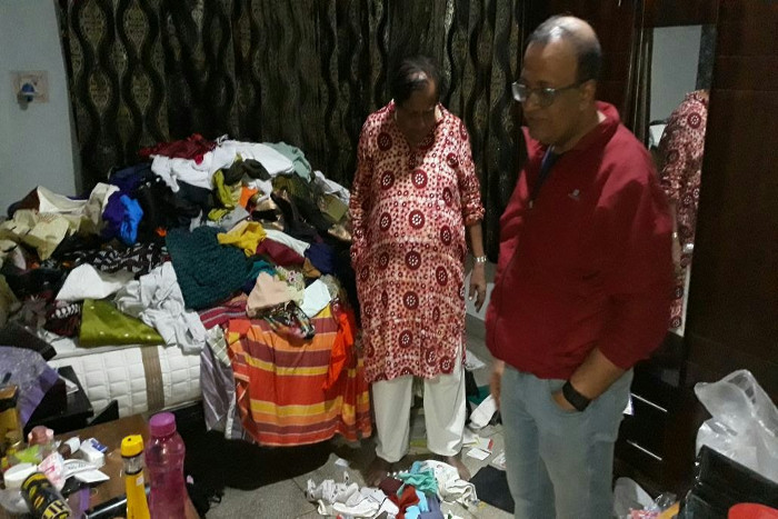 घर में हरकत होने पर रिटायर्ड इंजीनियर ने घर का मुआयना किया तो देखा कि घर में दो लुटेरे घुस आए हैं। इसी बीच रिटायर्ड इंजीनियर की पत्नी भी उठ गई। घर में हथियारबंद लुटेरे को देख वो काफी डर गई। बुजुर्ग महिला को देख लुटेरों ने भी तुरंत बुजुर्ग दंपती बंदूक तान दी। लुटेरों ने रिटायर्ड इंजीनियर से घर में कैश और गहने मांगे। रिटायर्ड इंजीनियर ने जब इनकार किया तो दोनों लुटेरों ने बुजुर्ग दंपती को बंधक बना कर मारपीट की। लुटेरों ने धमकी दी कि अगर कैश और गहने नहीं देंगे तो वे उन्हें जान से मार देंगे।