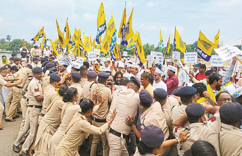 Performance of 5 organizations in the state: रायपुर। 1. शिक्षक भर्ती में धांधली का आरोप, आप ने किया प्रदर्शन: आम आदमी पार्टी (आप) ने शिक्षक भर्ती परीक्षा में धांधली और बदहाल शिक्षा व्यवस्था का आरोप लगाते हुए शिक्षा मंत्री के निवास का घेराव किया। पार्टी के प्रदेश अध्यक्ष कोमल हुपेंडी के नेतृत्व में हुए प्रदर्शन में कार्यकर्ताओं ने जमकर नारेबाजी की। इस दौरान कार्यकर्ताओं और पुलिस के बीच हल्की झूमाझटकी भी हुई। कार्यकर्ताओं की मांग है कि इसकी उच्च स्तरीय जांच होनी चाहिए। जांच नहीं होने पर पार्टी ने प्रदेशभर में उग्र आंदोलन करने की चेतावनी दी है।