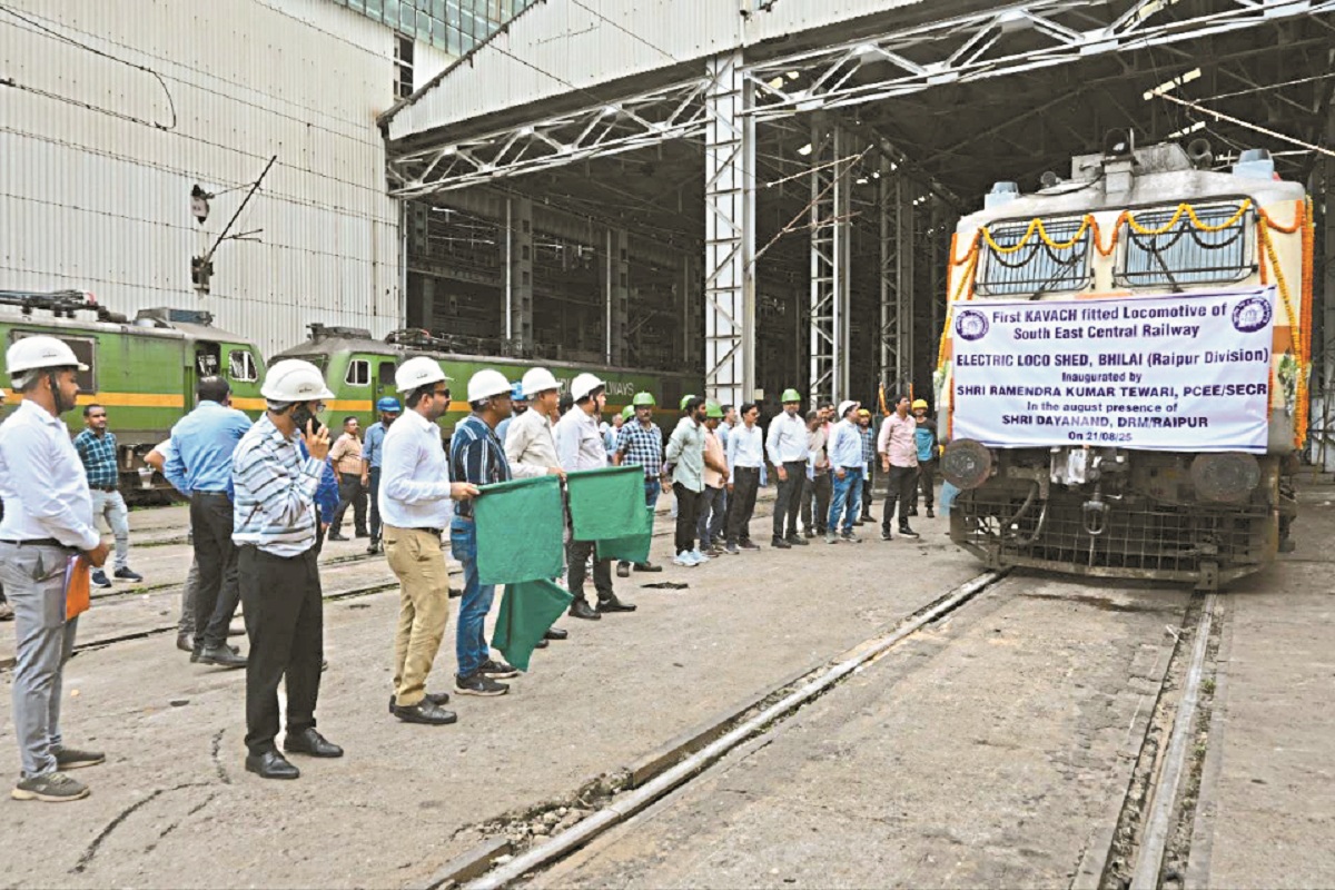 Indian Railway: दक्षिण पूर्व मध्य रेलवे ने रेल सुरक्षा की दिशा में बड़ा कदम उठाया है। बिलासपुर रेलवे जोन का पहला रेल इंजन अब स्वदेशी ऑटोमैटिक ट्रेन प्रोटेक्शन सिस्टम ‘कवच’ से लैस हो गया है। यह तकनीक आमने-सामने होने वाली ट्रेन दुर्घटनाओं को रोकने और संचालन को और सुरक्षित बनाने में सक्षम है। नागपुर से झारसुगुड़ा तक रेल पटरियों पर भी कवच लगाने का काम जारी है।