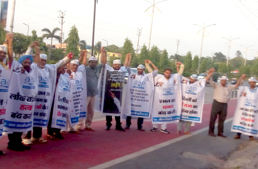 जेल में बंद तीन नेताओं को छोड़ने की मांग को लेकर AAP ने किया प्रदर्शन, GE रोड पर बनाया मानव श्रृंखला