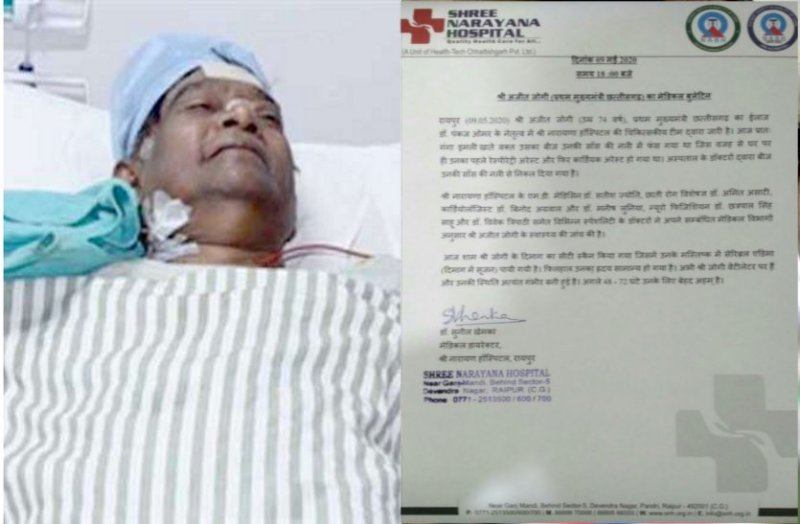रायपुर. छत्तीसगढ़ (Chhattisgarh) के पूर्व मुख्यमंत्री अजीत जोगी (Former CM Ajit Jogi) कार्डियक अरेस्ट आने की वजह से रायपुर एक निजी अस्पताल में भर्ती है। इस वक़्त अजीत जोगी को वेंटीलेटर पर रखा गया है। अस्पताल के कई विभागों के डॉक्टरों की निगरानी में उनका उपचार चल रहा है। सीनियर डॉक्टरों की टीम ने शनिवार शाम को अजीत जोगी के स्वास्थ्य की जांच की। इसके बाद अस्पताल की तरफ से मेडिकल बुलेटिन (Medical bulletin) जारी किया गया।
