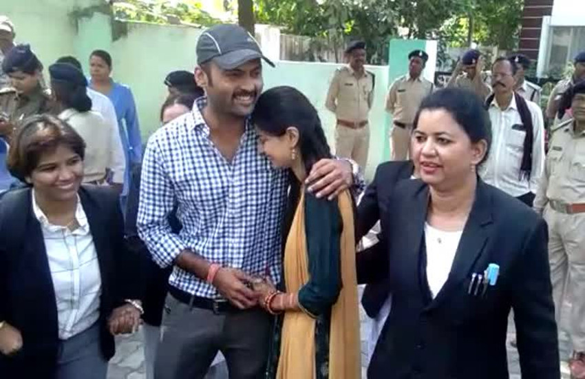रायपुर. उच्च न्यायालय के फैसले के बाद बुद्धवार को अंजलि जैन को सखी सेंटर से रिहा कर दिया गया। धमतरी की रहने वाली अंजलि को उनके पति इब्राहिम सिद्धकी उर्फ आर्यन आर्य लेने आये। हालांकि इस दौरान उसके मायके पक्ष से कोई भी व्यक्ति मौजूद नहीं था। पति से मिलकर अंजलि अपने आंसू नहीं संभाल पाई।
