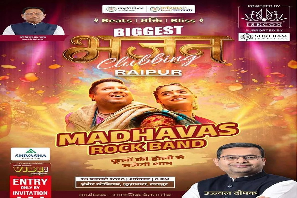 Raipur News: राजधानी के इंडोर स्टेडियम में शनिवार को शाम 6 बजे से युवाओं के लिए एक आध्यात्मिक-संगीत भजन क्लबिंग आयोजित किया जा रहा है। इस कार्यक्रम के मुख्य अतिथि मुख्यमंत्री विष्णुदेव साय होंगे। भजन क्लबिंग युवाओं को भक्ति, संस्कृति और आधुनिक संगीत शैली से जोड़ने का एक अभिनव प्रयास है।
