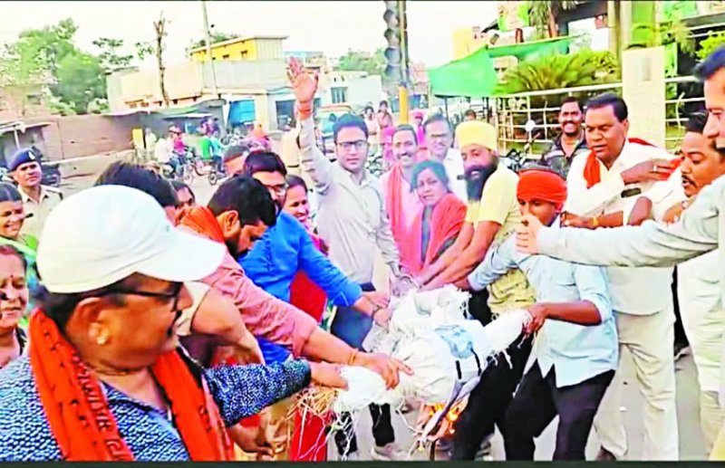 2000 करोड़ का शराब घोटाला : भाजपाइयों ने सीएम बघेल व आबकारी मंत्री लखमा का जलाया पुतला