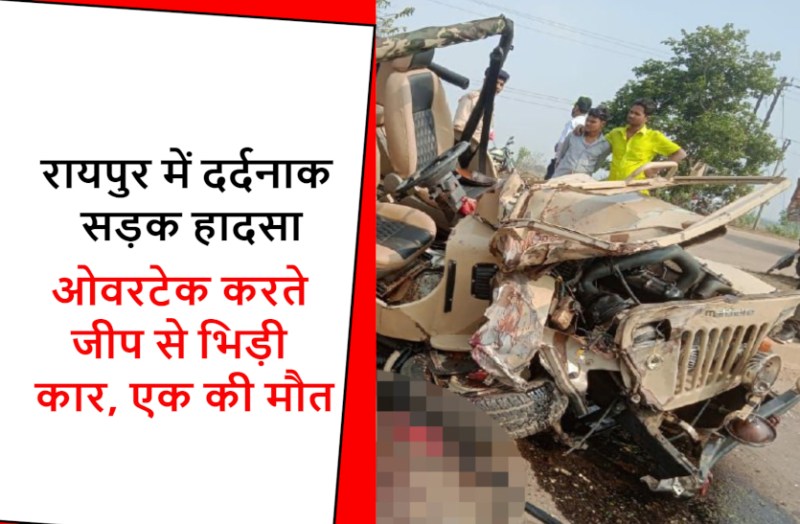 रायपुर में दर्दनाक सड़क हादसा: ओवरटेक करते जीप से भिड़ी कार, एक की मौत और चार घायल
