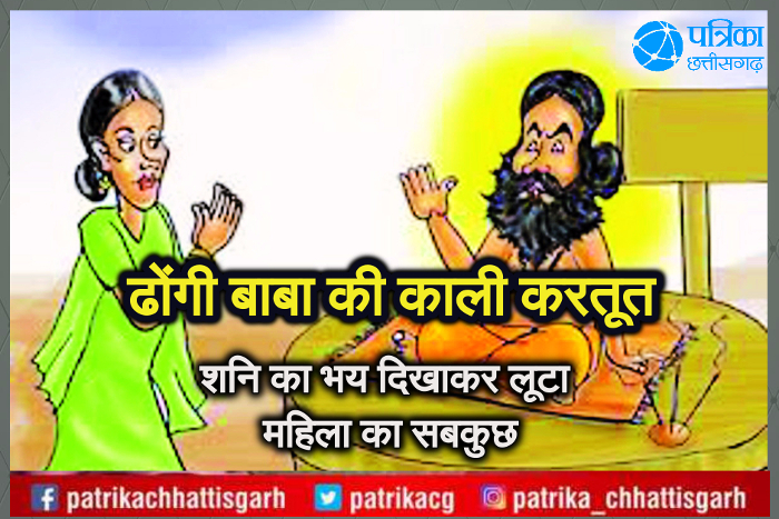 पहले वाले बाबा ने बताया कि शनि का प्रभाव दूर करने के लिए आपको लोहे की चूडि़यां पहननी पड़ेगी। सोने-चांदी के गहने उतारकर कागज में रख दो। यह कहते हुए बाबा ने एक कागज दिया और उसमें सभी गहने रखने के लिए कहा। महिला ने अपने सोने के कंगन, टॉप्स और चेन उसमें रख दिए। बाबा ने मंत्र पढ़कर कागज की पुडि़या उन्हें लौटा दी। इसे अगले दिन पहनने के लिए कहा। साथ ही चेतावनी दी कि इसकी सूचना किसी को न दें। महिला ने एेसा ही किया। शुक्रवार को जेवर पहनने के लिए पुडि़या खोली। उसमें सोने के जेवर नहीं थे, बल्कि उसके स्थान पर स्टील की दो चूडि़यां और धागा था। इसकी जानकारी महिला ने परिजनों को दी। परिजनों ने तेलीबांधा थाने में शिकायत दर्ज कराई है। पुलिस ने तीन अज्ञात बाबाओं के खिलाफ मामला दर्ज कर विवेचना में लिया है।
