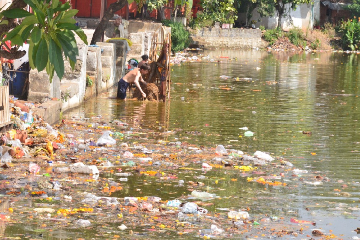 CG Durga Visarjan: छत्तीसगढ़ के रायपुर शहर में नगर निगम तालाबों को विसर्जन करने से नहीं बचा पाया। अफसरों को जिम्मेदारी देने का दावा तो किया गया, लेकिन इस पर कोई अमल नहीं हुआ। शहर के हर तालाब का घाट पूजन सामग्री से अटा हुआ नजर आया। वहीं इस बार भी दुर्गा प्रतिमाओं के विसर्जन में नगर निगम की घोर लापरवाही उजागर हुई है।