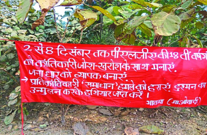 पीएलजीए सप्ताह के दूसरे दिन फरसिया में माओवादियों के बैनर और पर्चा मिलने से ग्रामीणों में दहशत है। उल्लेखनीय है कि माओवादियों द्वारा इन दिनों 2 से 8 दिसंबर तक शहीदी सप्ताह मनाया जा रहा है। शहीदी सप्ताह के दूसरे दिन सोमवार को नगरी ब्लाक मुख्यालय से करीब 8 किमी दूर फरसिया महामाई मंदिर के पास भारी मात्रा में माओवादी पोस्टर और बैनर चस्पा किए हैं। इसे भारतीय कम्प्युनिस्ट पार्टी माओवादी, सीतानदी एरिया समिति द्वारा लगाया गया है। सुबह ग्रामीणों की नजर पड़ी तो नगरी पुलिस को गई। पुलिस ने बैनर-पोस्टर जब्त कर लिया है। नगरी, सिहावा के साथ ही खल्लारी, बोराई, बिरनासिल्ली, मेचका कैम्प के सीआरपीएफ, सीएएफ, एसओजी, इफेक्टिव-30 व जिला बल जंगल ने जंगल में सर्चिंग बढ़ा दी है।