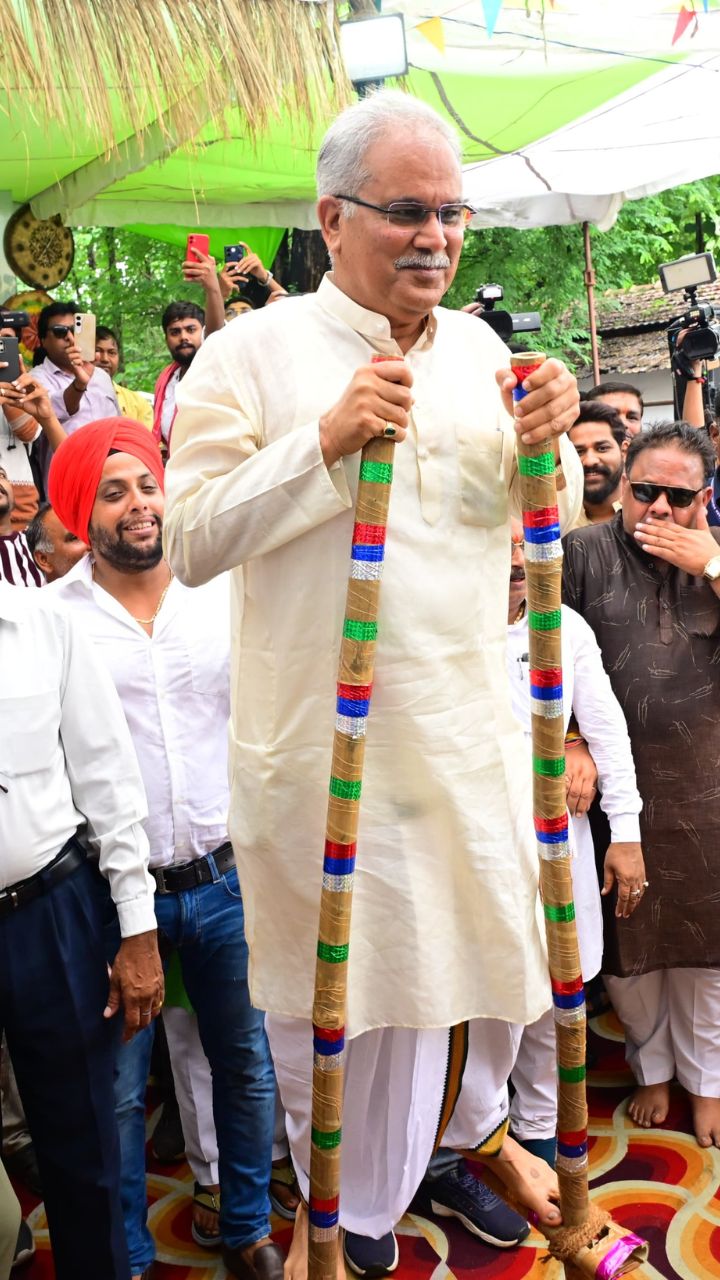 पूर्व CM भूपेश बघेल ने चढ़ी गेड़ी (फोटो सोर्स- X हैंडल)
