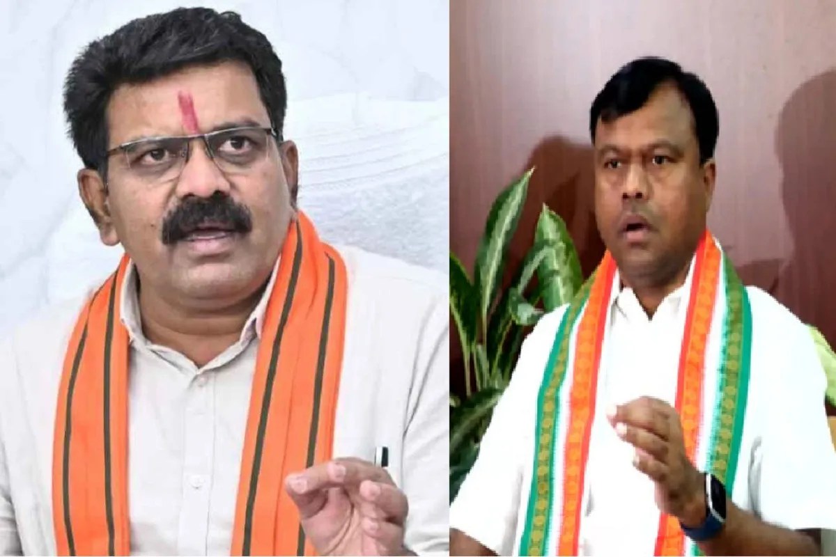 गृहमंत्री विजय शर्मा और कांग्रेस प्रदेश अध्यक्ष दीपक बैज ( Photo - Patrika )