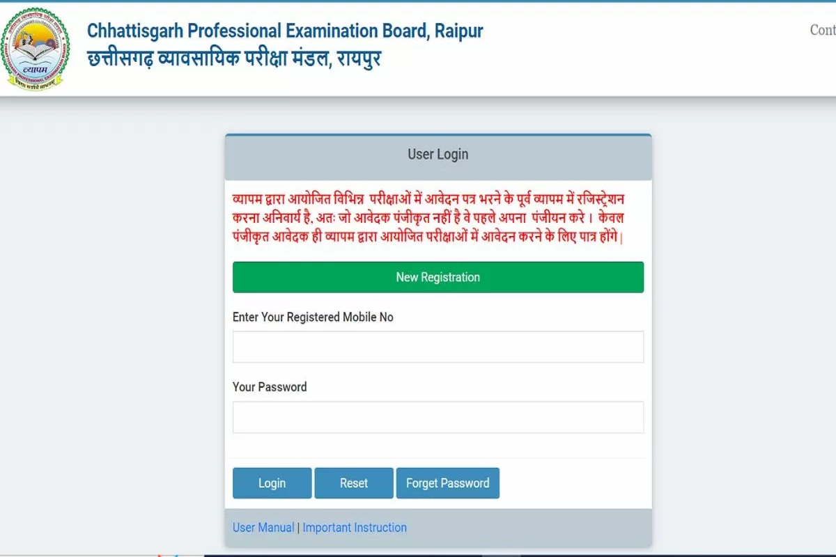vyapam.cgstate.gov.in एवं https://vyapamaar.cgstate.gov.in से प्राप्त की जा सकती है।