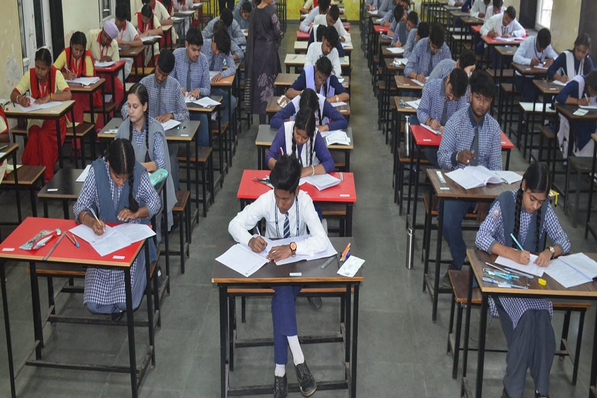 RD तिवारी स्कूल आत्मानंद आमापारा में 12वीं की परीक्षा देते हुए विद्यार्थी ( File Photo - Patrika )