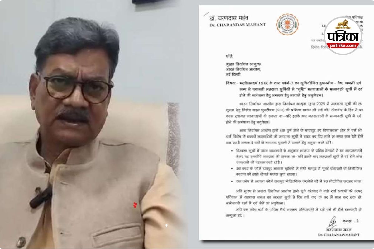 विपक्ष के नेता डॉ. चरण दास महंत ने चुनाव आयोग को लिखे एक लेटर में कहा कि छत्तीसगढ़ में वोटर लिस्ट की एक्यूरेसी पक्का करने के लिए 2025 में स्पेशल इंटेंसिव रिवीजन (SIR) का प्रोसेस शुरू किया गया था। डेमोक्रेसी के हित में यह कदम वेलकम होता—अगर इसके बाद वोटिंग राइट्स पर सिस्टमैटिक अटैक न हुआ होता। लेकिन, आज हालत यह है कि SIR पूरा होने के बावजूद, हर असेंबली सीट पर एक खास कैटेगरी के हजारों लोगों को वोटर लिस्ट से बाहर होने का डर है, जबकि वे सालों से इलेक्शन में वोट देते आ रहे हैं।