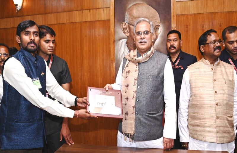 मुख्यमंत्री भूपेश बघेल ने राष्ट्रीय नवाचार किसान सम्मान से नवाजे रामलाल लहरे को कृषि के क्षेत्र में योगदान के लिए उन्हें बधाई दी।