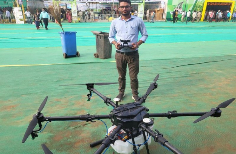 बिलासपुर में आयोजित कृषि मेले ड्रोन उड़ाते पराग झा।