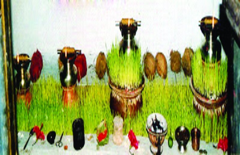 ऐकर कहे के मतलब हावय कि गंवई म सब्बो के घर ले कुछु न कुछ सामान आथे, तेकर ले दाई के सिंगार अउ पूजा करे जाथे। नवरात के ठउका एक दिन पहिली पांच पंच अउ गंवई के बइगा ह नइते पंडा ह जंउ, तिली, धान, कोदो, कुटकी, सरसों, मूंग, चना अउ गहूं जइसन नव परकार के अनाज ल माटी के कुंडेरा म फि जो देथे। दूसरइया दिन पूजा-पाठ के संगे-संग कुम्हार के माटी अउ राख ल मिलाके झेंझरी अउ नवठिक दोना म जंवारा ल बोए जाथे। जंवारा ल बोंए के संगे-संग दाई के मूरति अउ जोत ल नउ दिन बर बार दे जाथे। इही बेरा म पांच पंच अउ गंवई के बइगा, नइ त पंडा ह हूम देके अउ पूजा-पाठ करके दाई के सेवा जतन म लग जाथे।