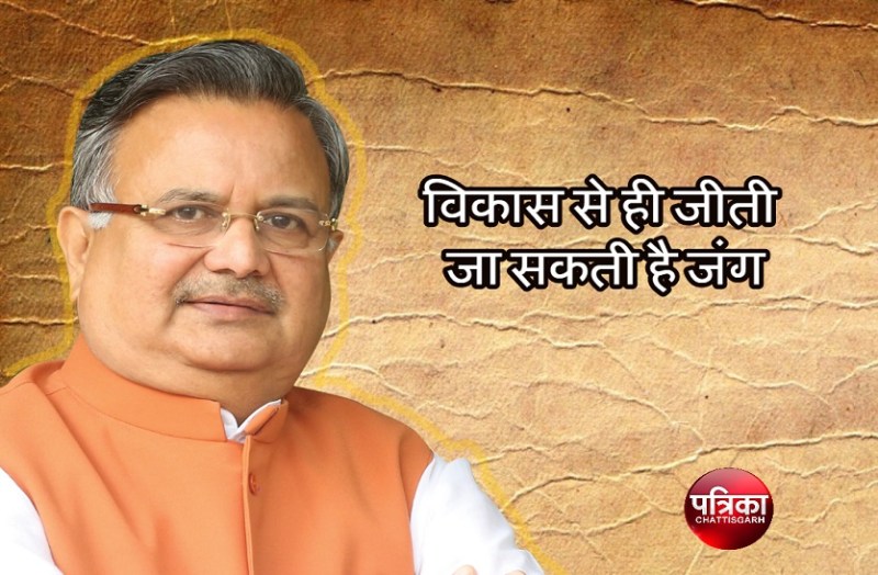 भाजपा के सबसे लंबे कार्यकाल वाले मुख्यमंत्री ने कहा कि नक्सलवाद की लड़ाई को केवल विकास के जरिए ही जीता जा सकता है और जब तक नरेंद्र मोदी प्रधानमंत्री रहेंगे, इस मद में पैसों की कोई कमी नहीं आएगी। सिंह ने कहा कि राज्य के लिए मेरा सपना एक शांतिपूर्ण और विकासशील छत्तीसगढ़ है। हम उसी राह पर अग्रसर हैं। हम जल्द ही नक्सलवाद को जड़ से उखाड़ फेंकेंगे।