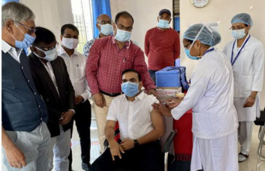 वैक्सीन का पहला डोज लेते हुए कलेक्टर यशवंत कुमार ने खुद फोटो की थी शेयर।